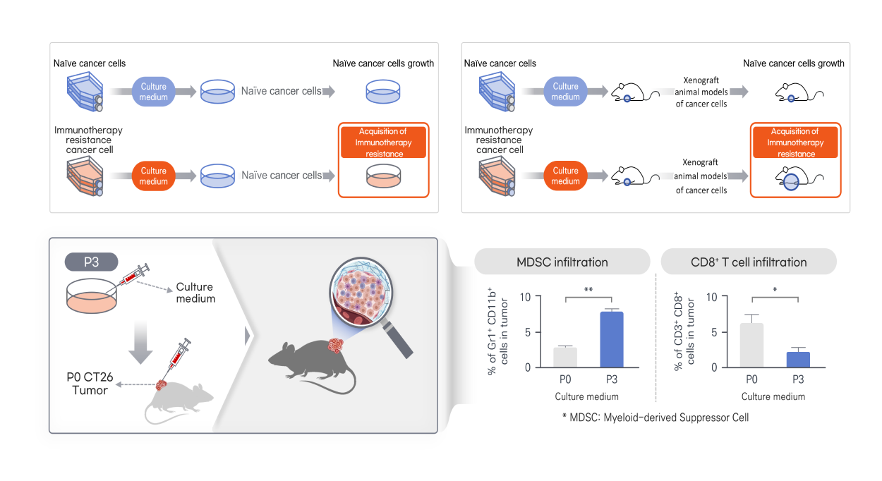 면역항암치료 불응 연관 분비성 단백질 식별 자체 개발된 프로세스를 통해 면역항암치료 불응성에 연관된 분비성 단백질 후보군의 도출 및 검증 진행