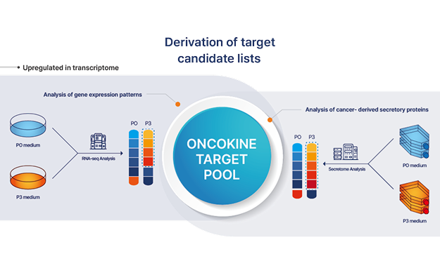 ONCOKINE®은 종양 세포에서 분비되어 종양 미세 환경에서 주로 발견되는 단백질로, 면역 항암 치료의 불응성 유도와 관련이 있습니다.