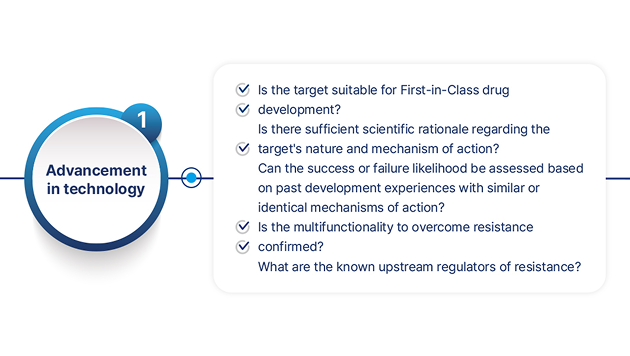 개발 타당성 검증 현행 기술 발전 양상, 시장 경쟁구도 및 물질 개발 현황을 종합적으로 평가하여 최종 파이프라인 선정