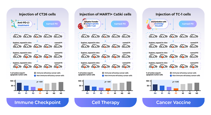 면역항암제 불응성 모델 구축 3종의 면역항암제 모달리티를 중심으로 50종 이상의 면역항암 불응성 모델 구축(비소세포폐암, 대장암, 흑색종, 간세포암, 유방암 등)